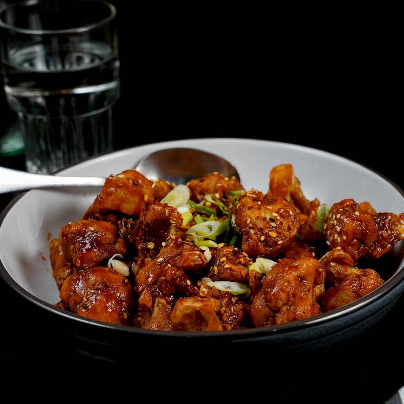 “Szechuan style” cauliflower, sesame, green onion, red pepper
