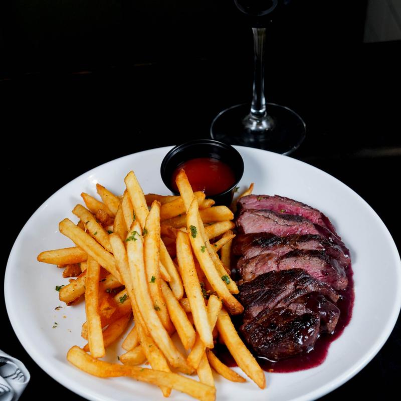 Grilled hanger, house frites, roasted shallot red wine demi
