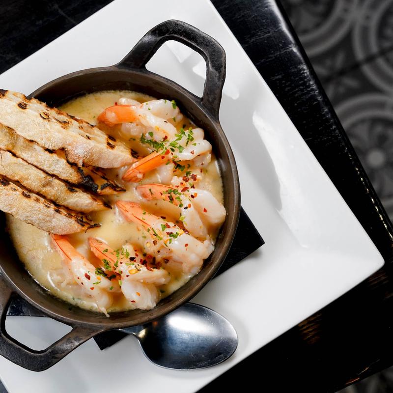Sautéed shrimp, grilled country bread, white wine, garlic butter, red pepper flakes